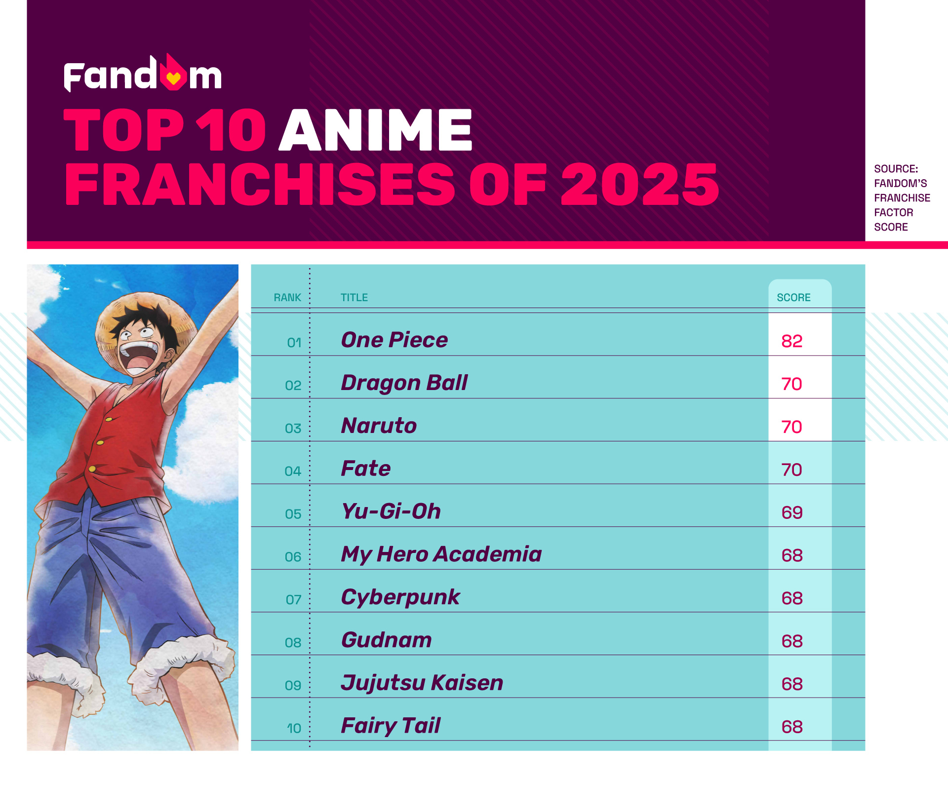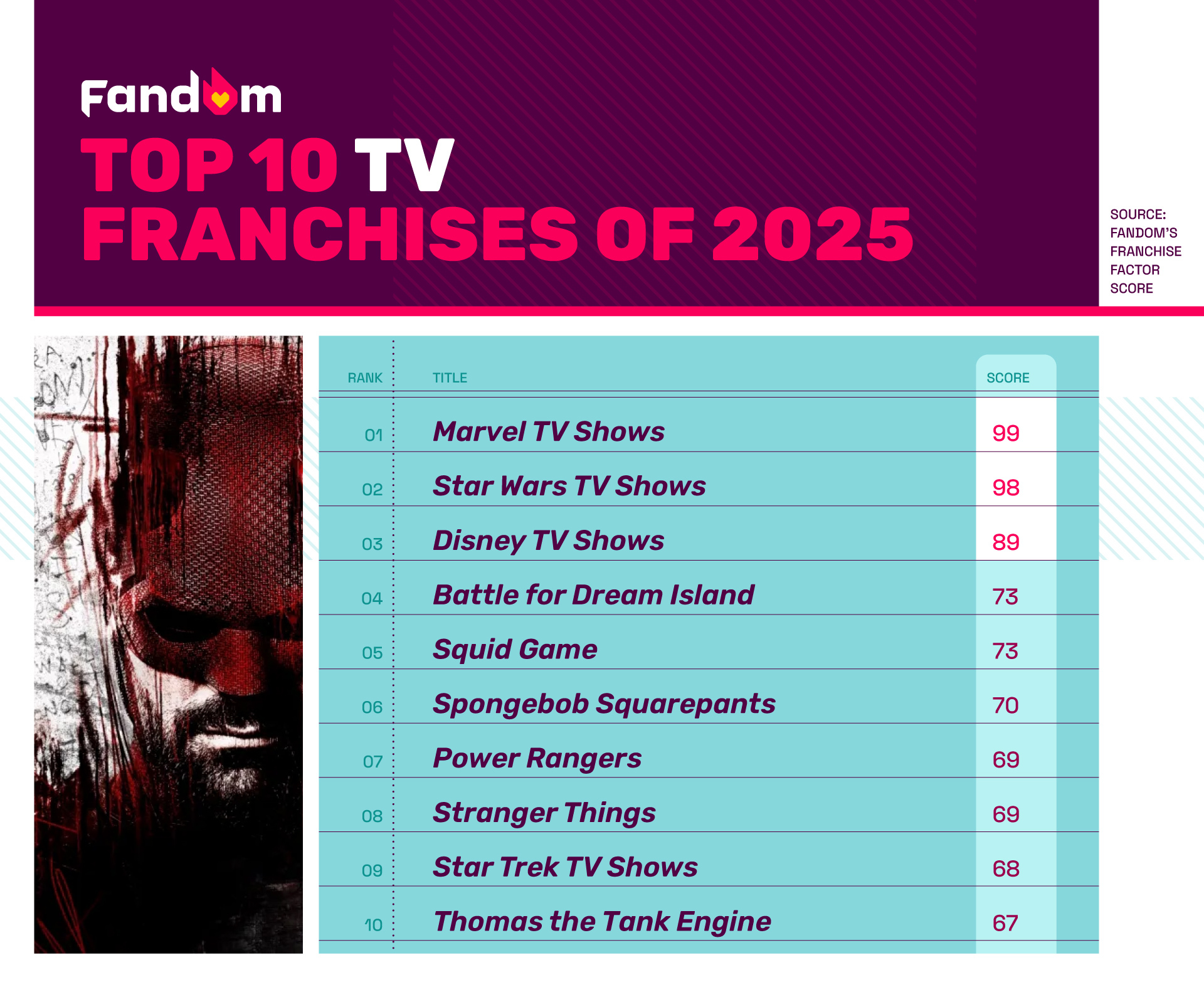 Based on Fandom’s 2025 Franchise Factor Score, here are the complete rankings: