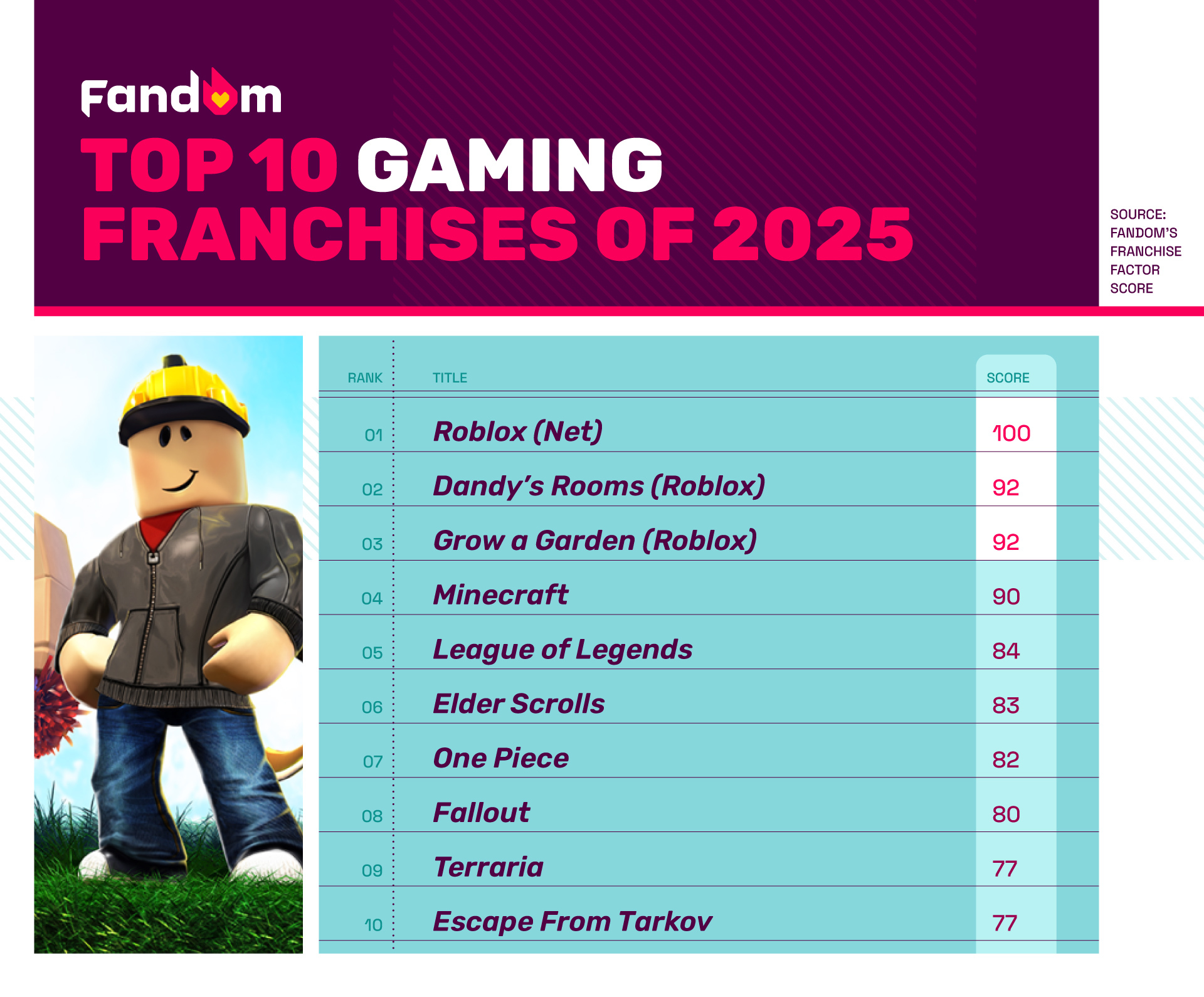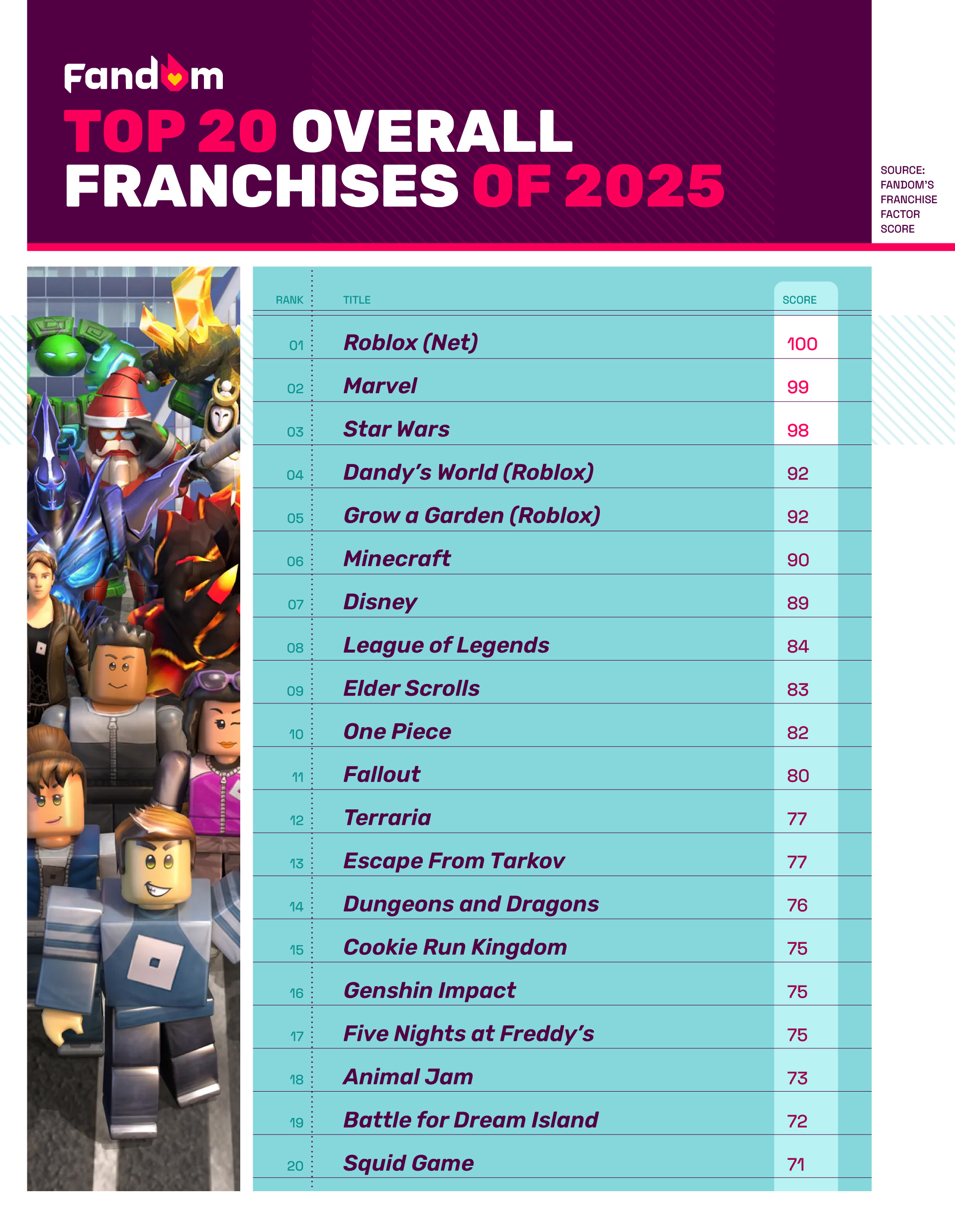 Roblox Jumps To #1 With A Perfect 100 In Fandom's 2025 Franchise Factor Score